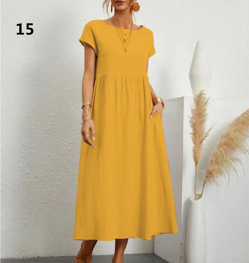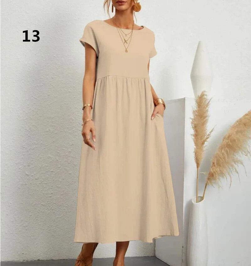 ◎【送料無料】ワンピース レディース ロングワンピース 半袖 ビッグシルエット 体型カバー きれいめ ラウンドネック