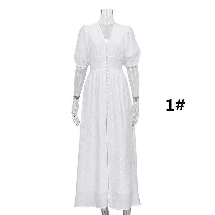◎【送料無料】人気新作 ワンピース レディース 半袖 ロング丈ワンピース スリット Vネック フェミニン オシャレ
