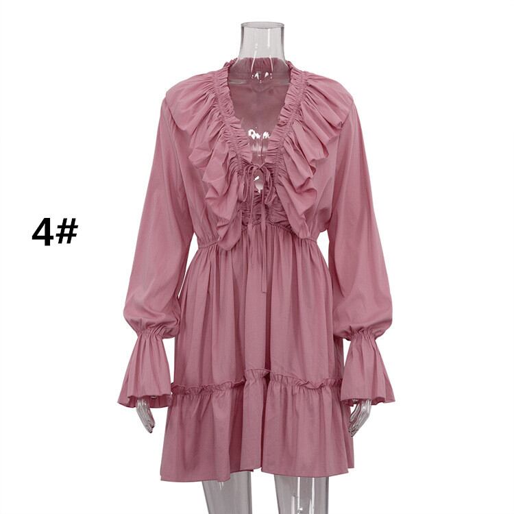 ◎【送料無料】ワンピース レディース 長袖ワンピース vネック きれいめ フレア 大人可愛い