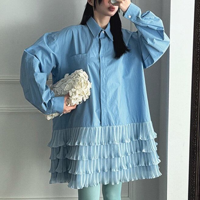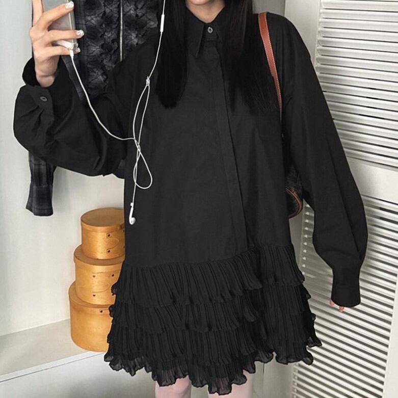 ◎【送料無料】2026年春新作 ワンピース シャツワンピース レディース 長袖ワンピース 異素材 個性 可愛い
