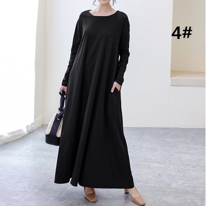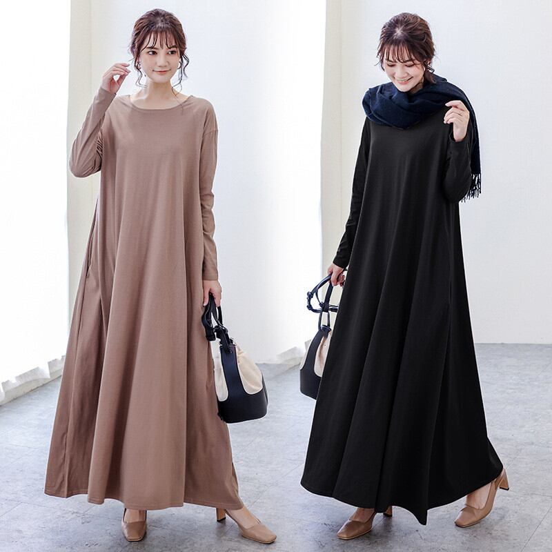 ◎【送料無料】ワンピース レディース ロング丈ワンピース マキシワンピース Tシャツワンピース 長袖 Uネック