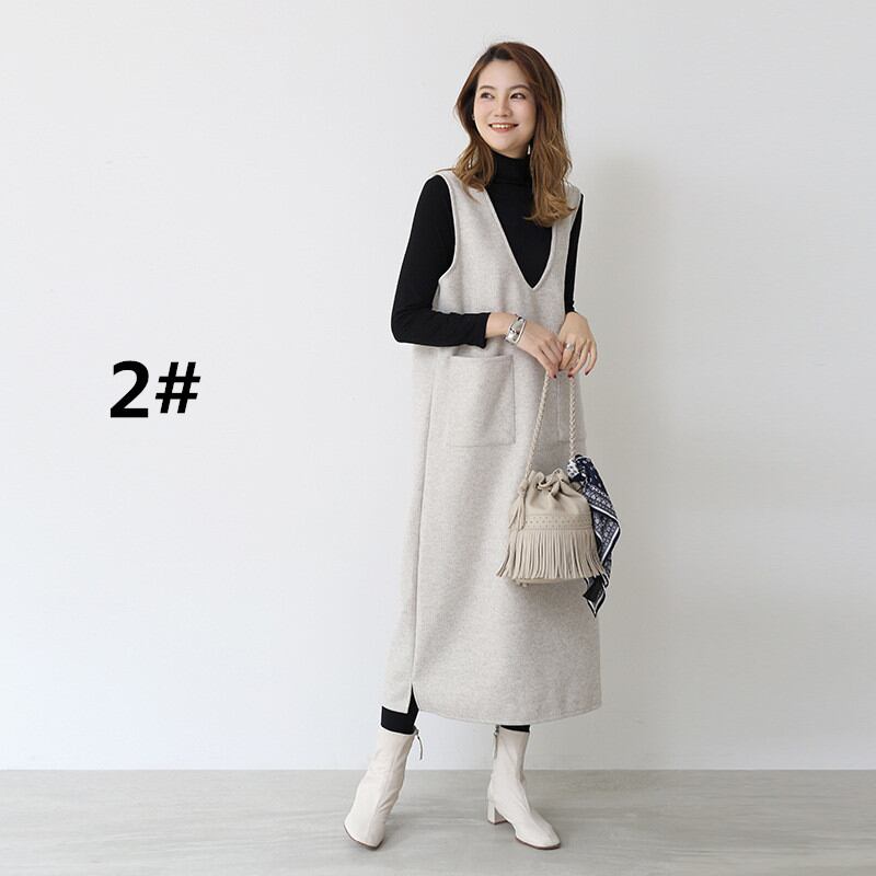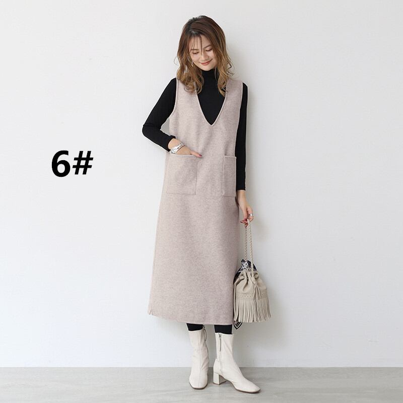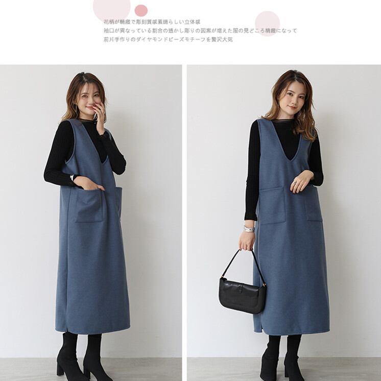 秋冬向きの厚手生地を使用、レディースベストワンピース。