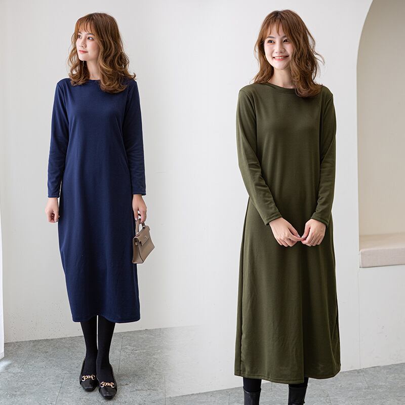◎【送料無料】ワンピース ロングワンピース 長袖 レディース 春 秋 きれいめ ラウンドネック カジュアル