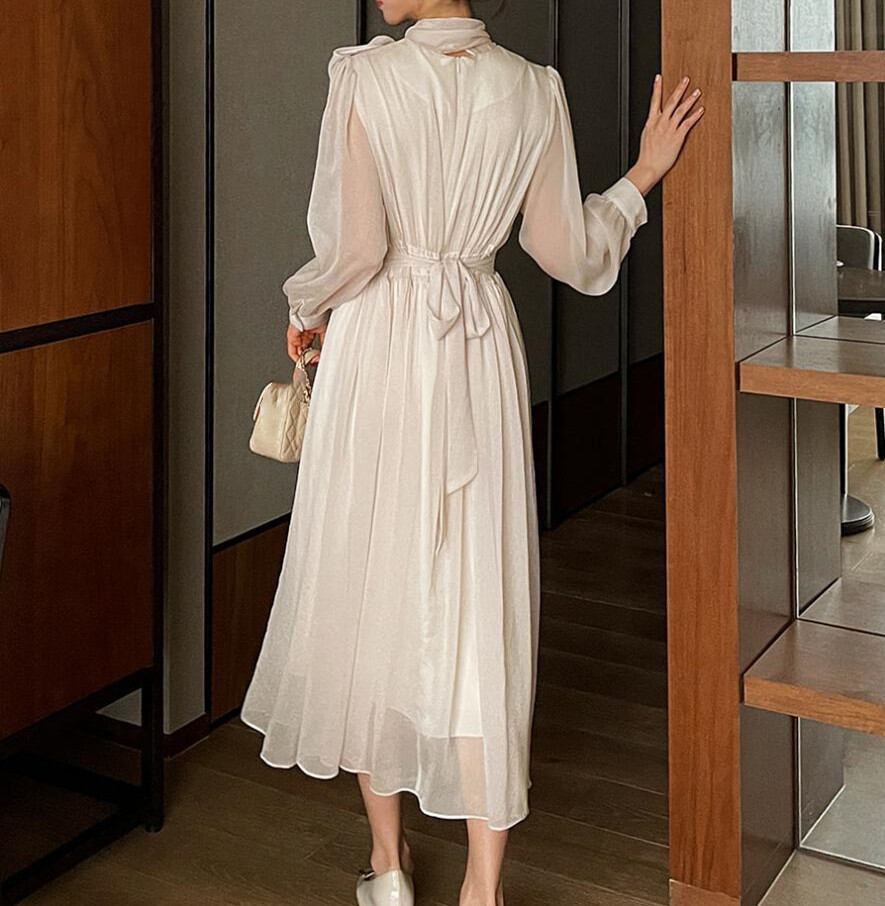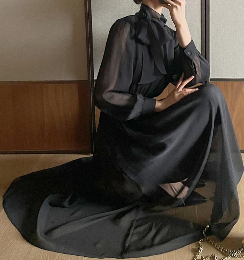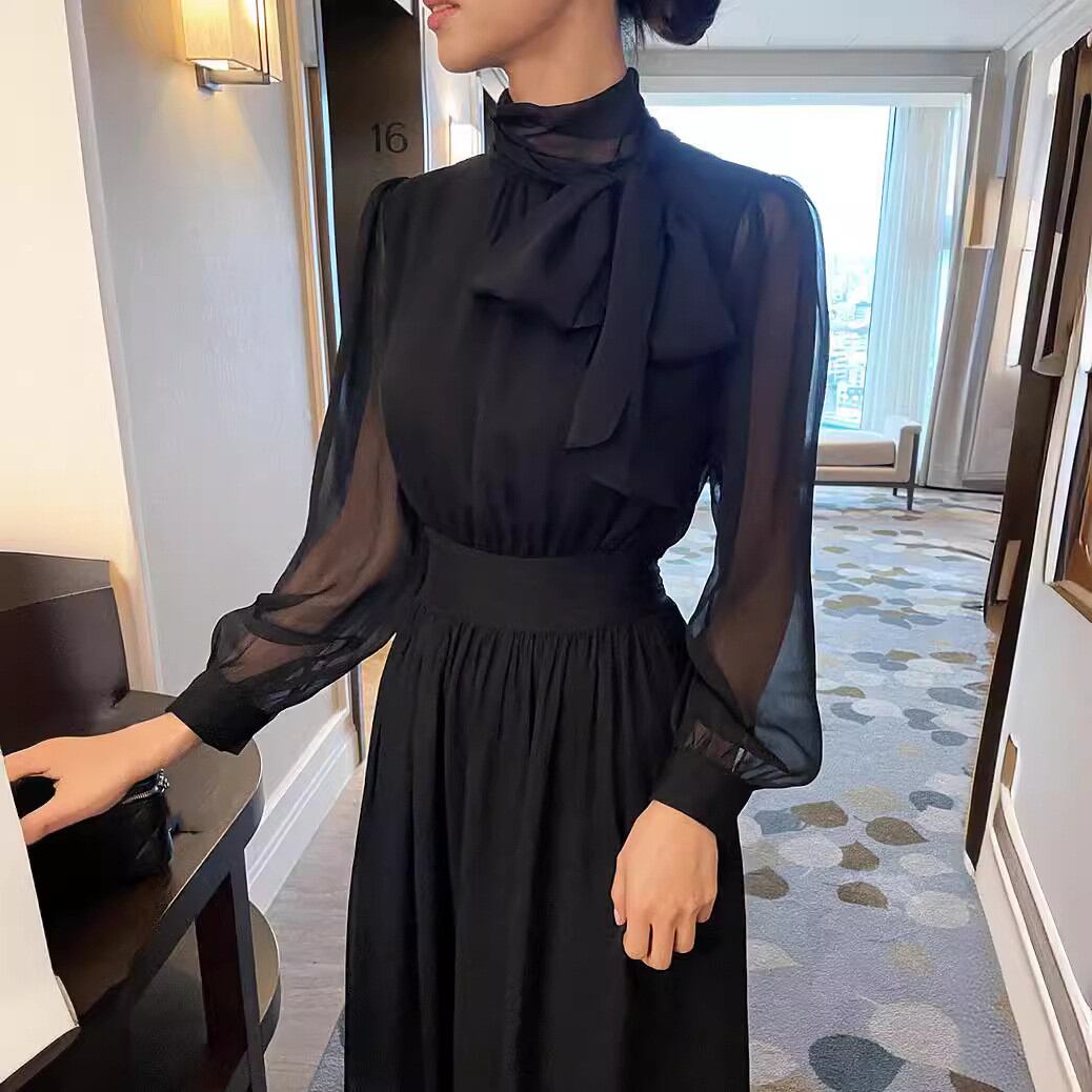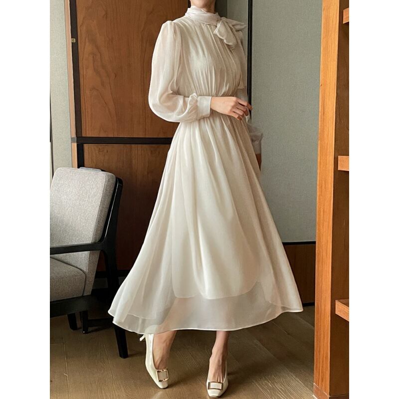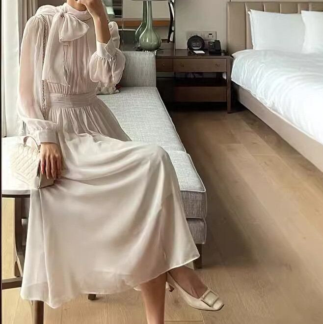 ◎【送料無料】ワンピース レディース ロングワンピース リボン 長袖ワンピ 気質 エレガント Sweet