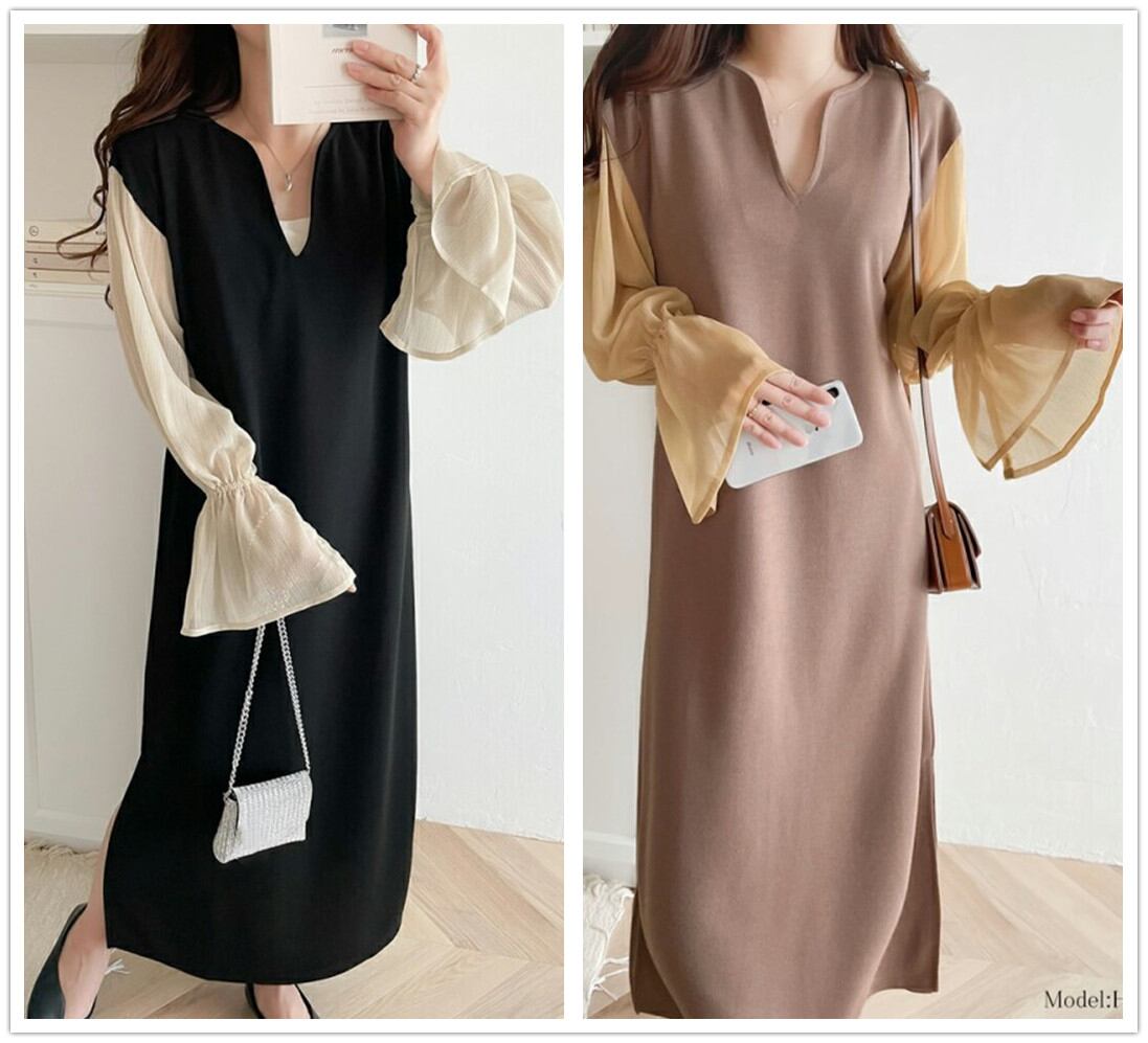 ◎【送料無料】2026年秋新作 ワンピース レディース ロングワンピ 異素材 きれいめ おしゃれ 韓国風