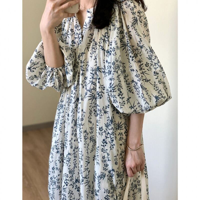 ◎【送料無料】ワンピース 花柄ワンピース ハブスリープ レディース ロング丈ワンピ ビッグシルエット きれいめ おしゃれ