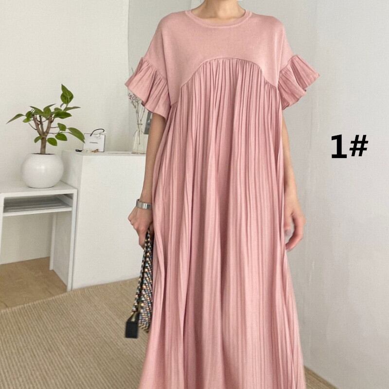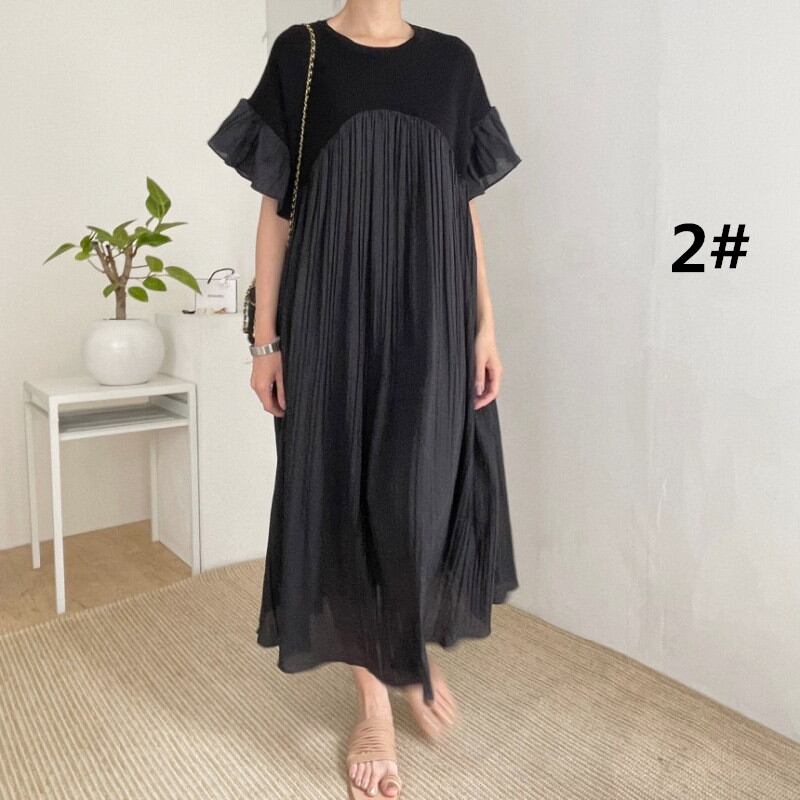 ◎【送料無料】ワンピース ロング丈ワンピース 半袖ワンピース レディース ラウンドネック ビッグシルエット おしゃれ