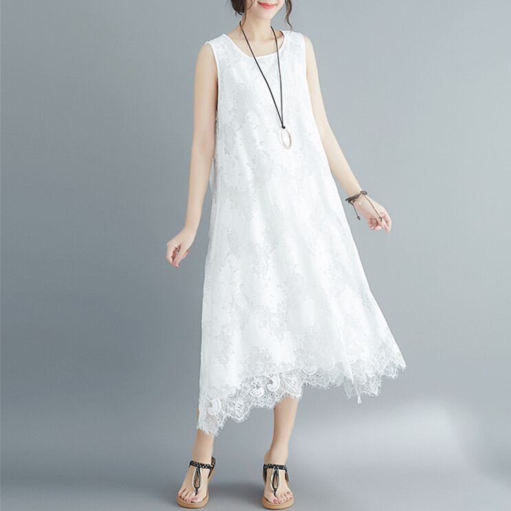 ◎【送料無料】マキシワンピース レディース レース 花柄 Aライン ノースリーブ ボートネック ロング丈 ミモレ丈 きれいめ