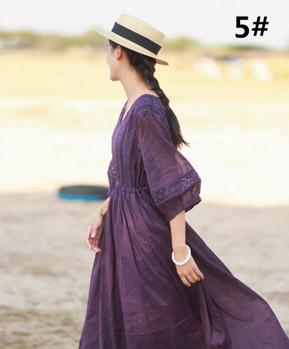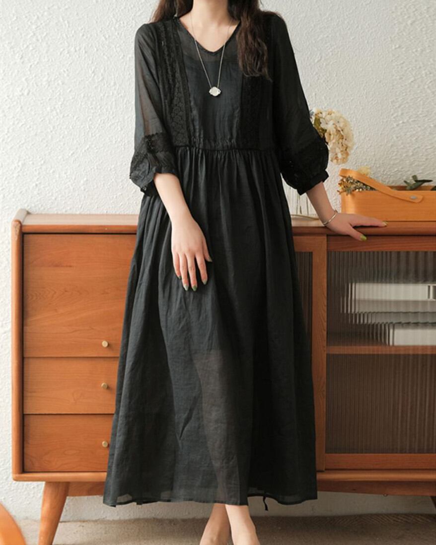 ◎【送料無料】ワンピース ロング丈ワンピース レディース 半袖ワンピース Vネック 気質 おしゃれ ビッグシルエット