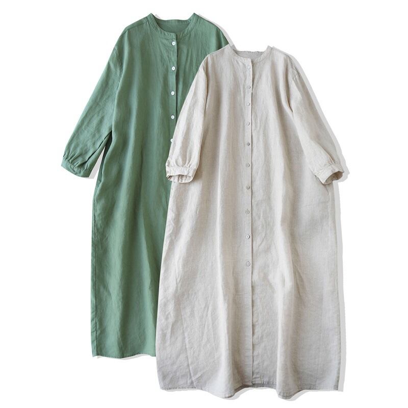 ◎【送料無料】ワンピース シャツワンピース ロング丈ワンピース レディース ラウンドネック 半袖 気質 おしゃれ