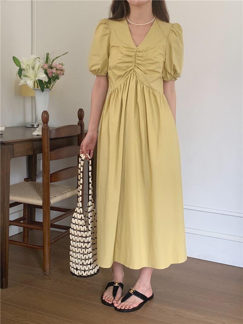 ◎【送料無料】2026年夏新作 ワンピース ロング丈ワンピース レディース Vネック 半袖 気質 大人可愛い