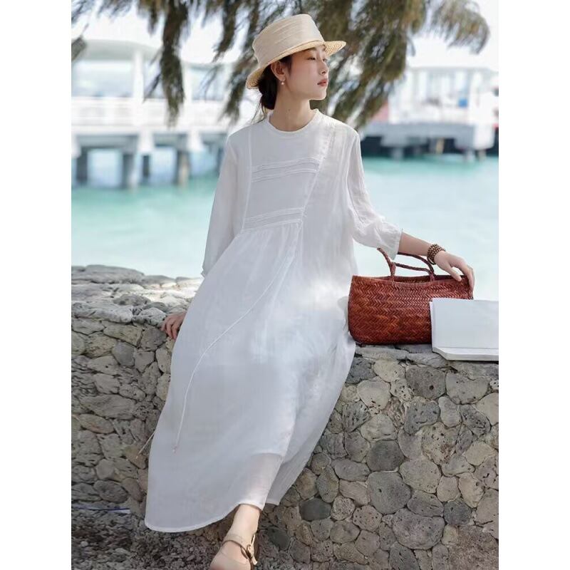 ◎【送料無料】ワンピース ロング丈ワンピース 2026年夏新作 ラウンドネック レディース 気質 オシャレ