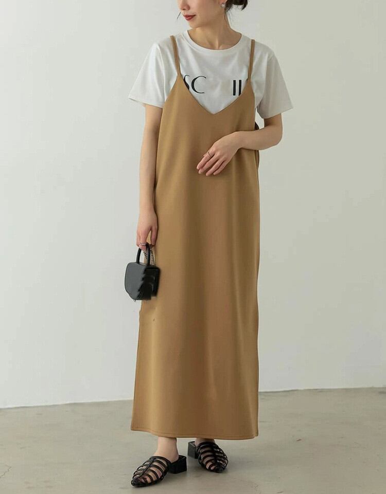 程よいカジュアルさと、きちんと感の両方を兼ね備えた、キャミワンピース。