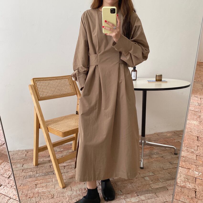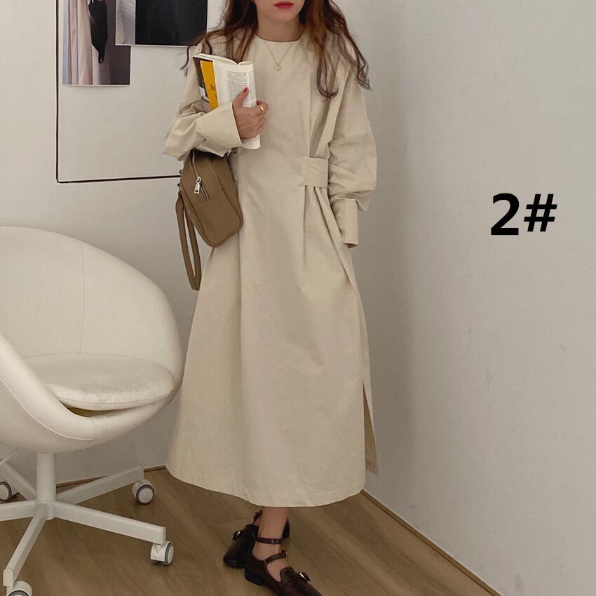 ◎【送料無料】2026年秋新作 ワンピース ラウンドネック ロング丈ワンピース レディース 長袖 気質 オシャレ