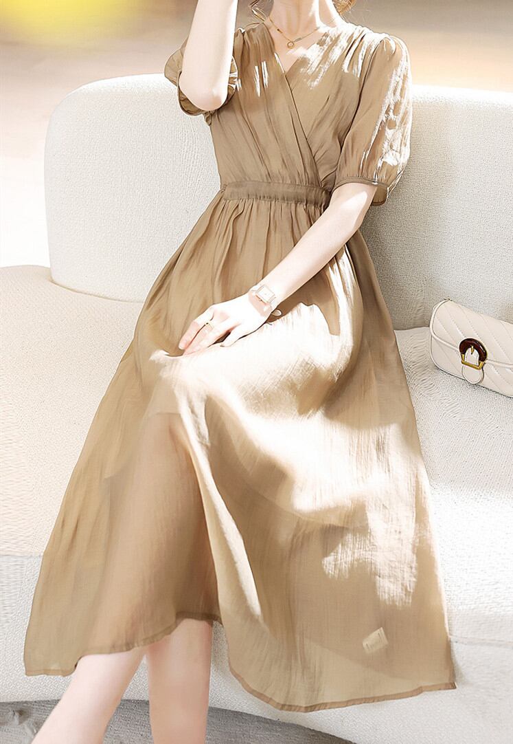 ◎【送料無料】2026年夏新作 ワンピース ロング丈ワンピース レディース Vネック 気質 オシャレ