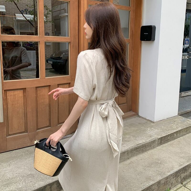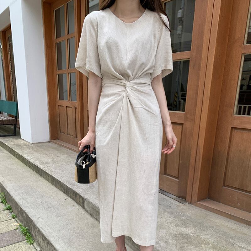 ◎【送料無料】2026年夏新作 ワンピース ロング丈ワンピース レディース ラウンドネック 半袖 カジュアル 気質 エレガント
