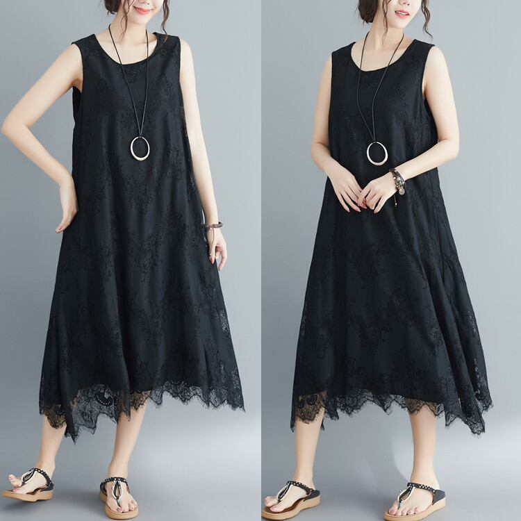 ◎【送料無料】マキシワンピース レディース レース 花柄 Aライン ノースリーブ ボートネック ロング丈 ミモレ丈 フレア