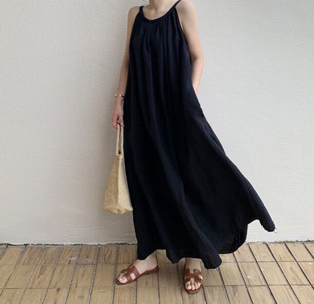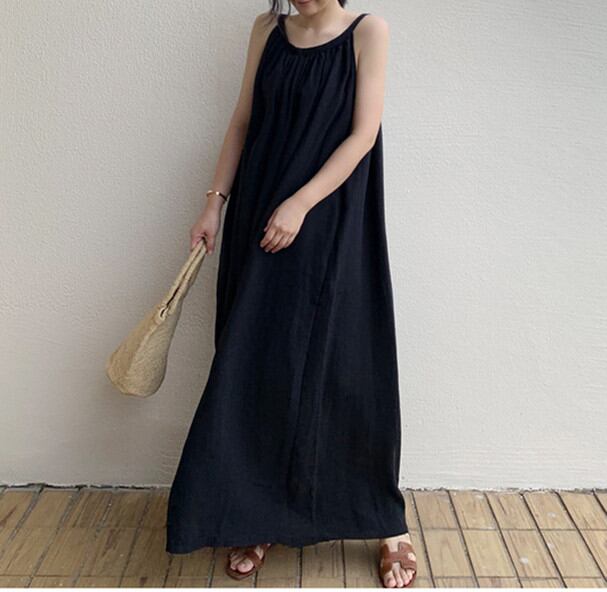 ◎【送料無料】キャミワンピ ワンピース レディース ロング丈ワンピース ノースリーブ 韓国風 着痩せ Aライン