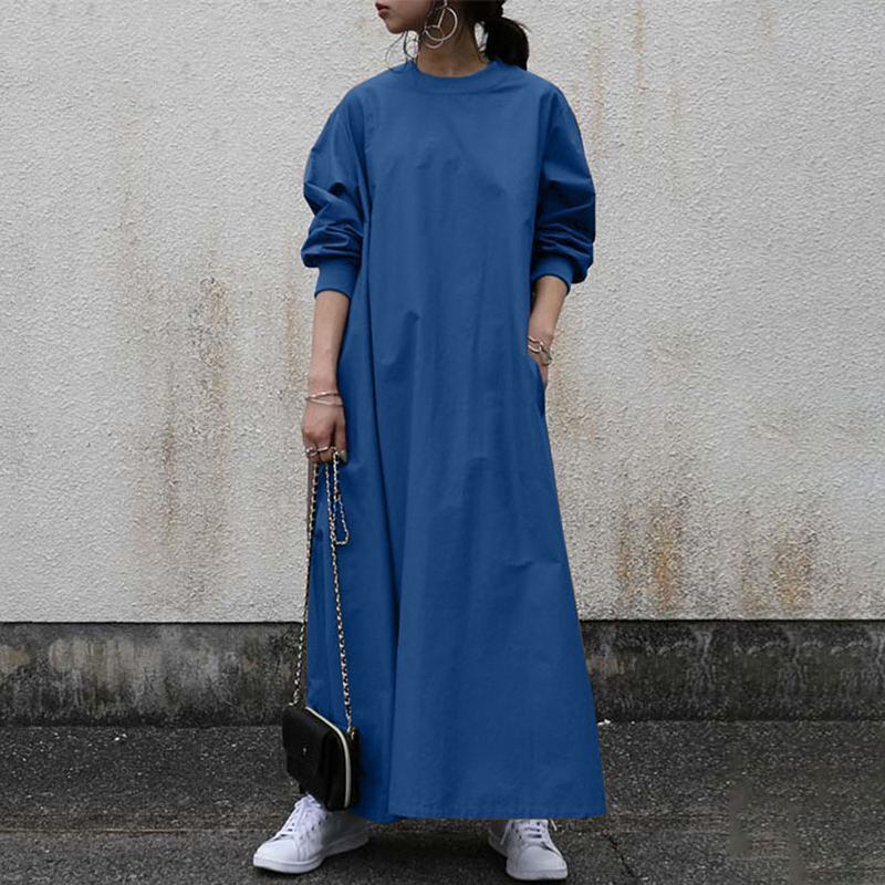 ◎【送料無料】楽天人気 ワンピース 秋新作 ロングワンピ マキシワンピ ラウンドネック 長袖 体型カバー カジュアル