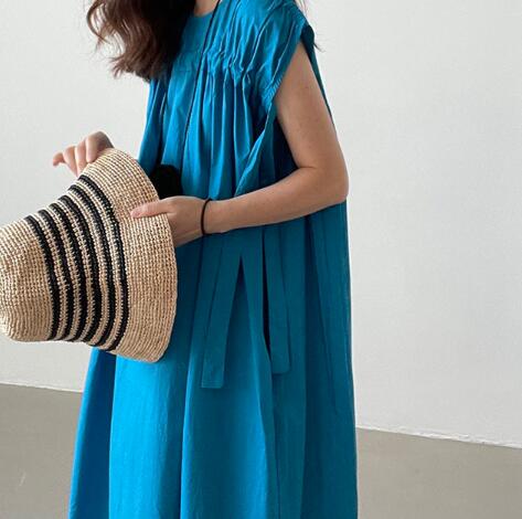 ◎【送料無料】レディース ワンピース ノースリーブ ドレス ロング丈 クルーネック ヴィンテージ 優雅