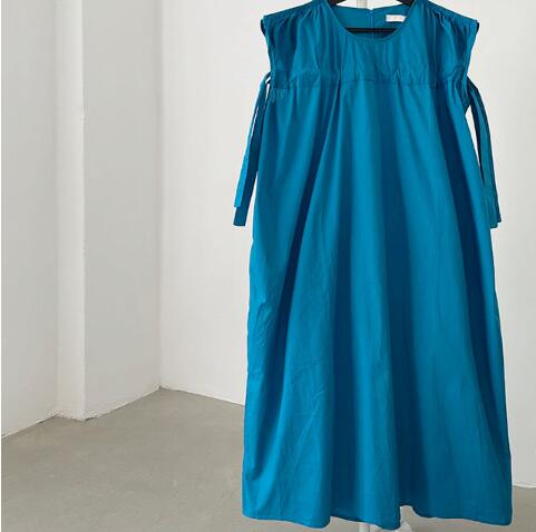 レディース ワンピース ノースリーブ ドレス ロング丈 クルーネック ヴィンテージ 優雅