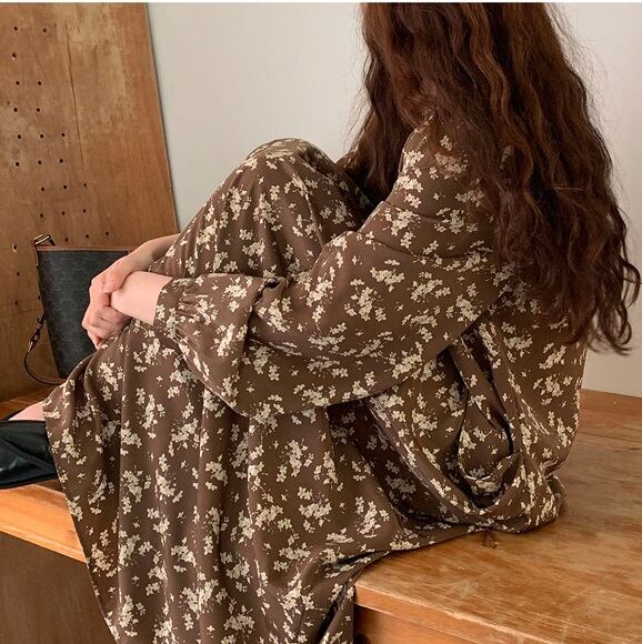 注目すべきアイテム 早い者勝ち 総柄 ワンピース 長袖 ドレス チュニック 春夏