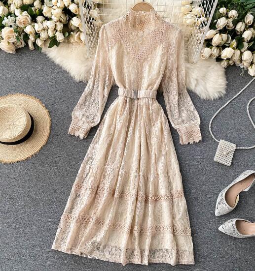 ◎【送料無料】新生活 春 レディース トップス ワンピース パーティー レース ドレス Aライン