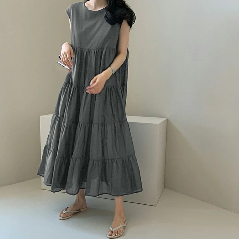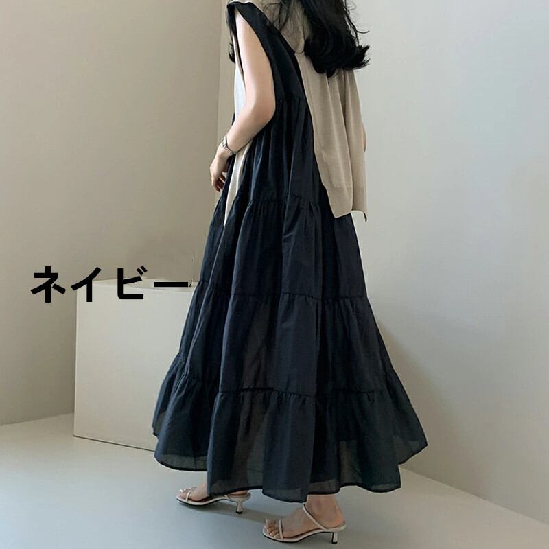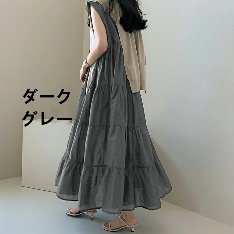 ◎【送料無料】ワンピース レディース ロングワンピース ロング丈 マキシ丈 ノースリーブ ワンピ ラウンドネック 無地