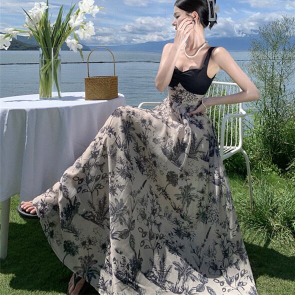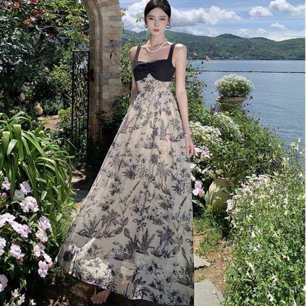 ◎【送料無料】花柄 ワンピース レディース 春 夏 リゾート ロング ワンピ マキシ丈 ノースリーブ 袖なし 切り替えワンピ