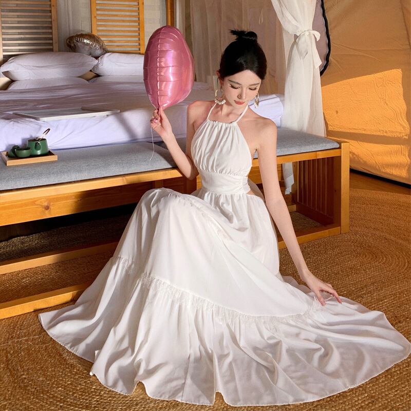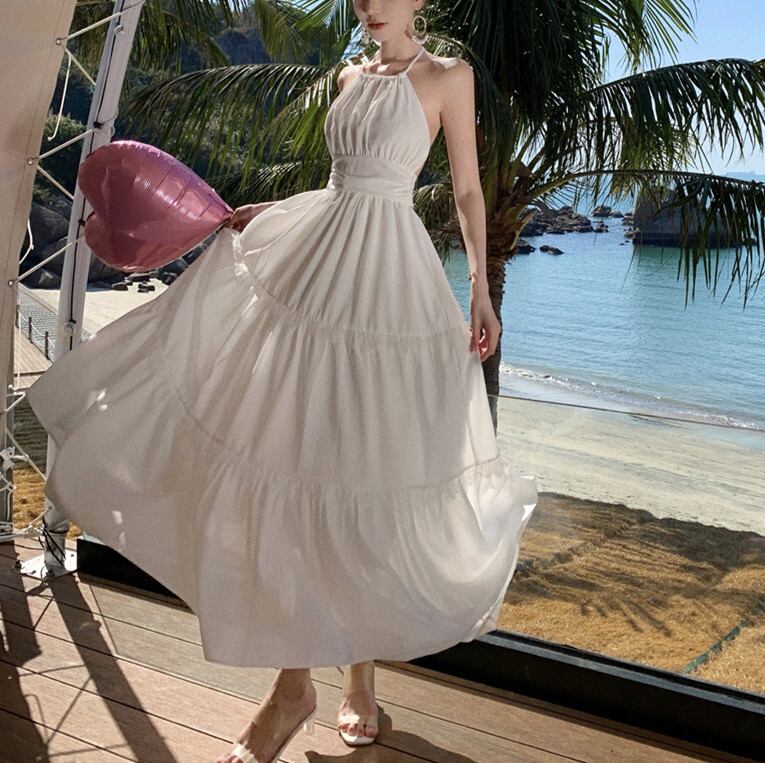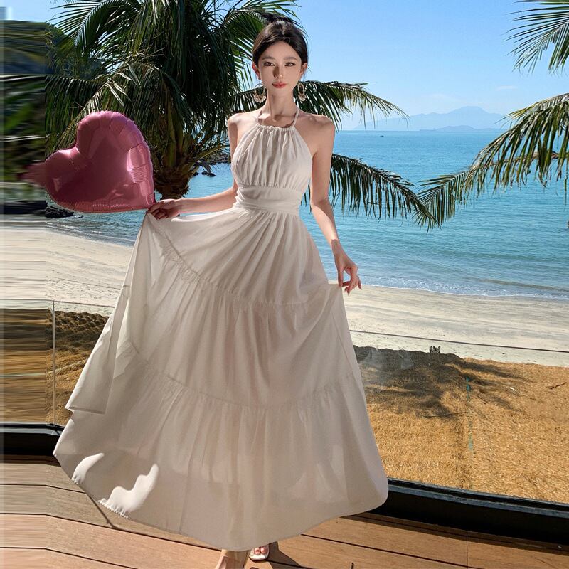 ◎【送料無料】リゾート ワンピース ドレープ バッククロス マキシ丈ワンピース ボヘミアン ハワイアン 夏新作 オルチャン