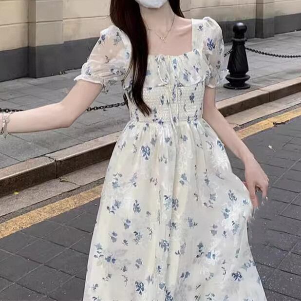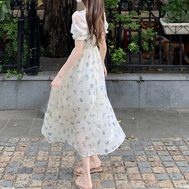 ◎【送料無料】リゾートワンピース 花柄 ロングワンピ 体型カバー シースルー かわいい おしゃれ 半袖ワンピ レディース