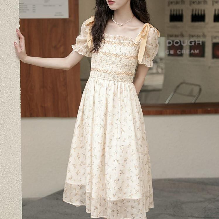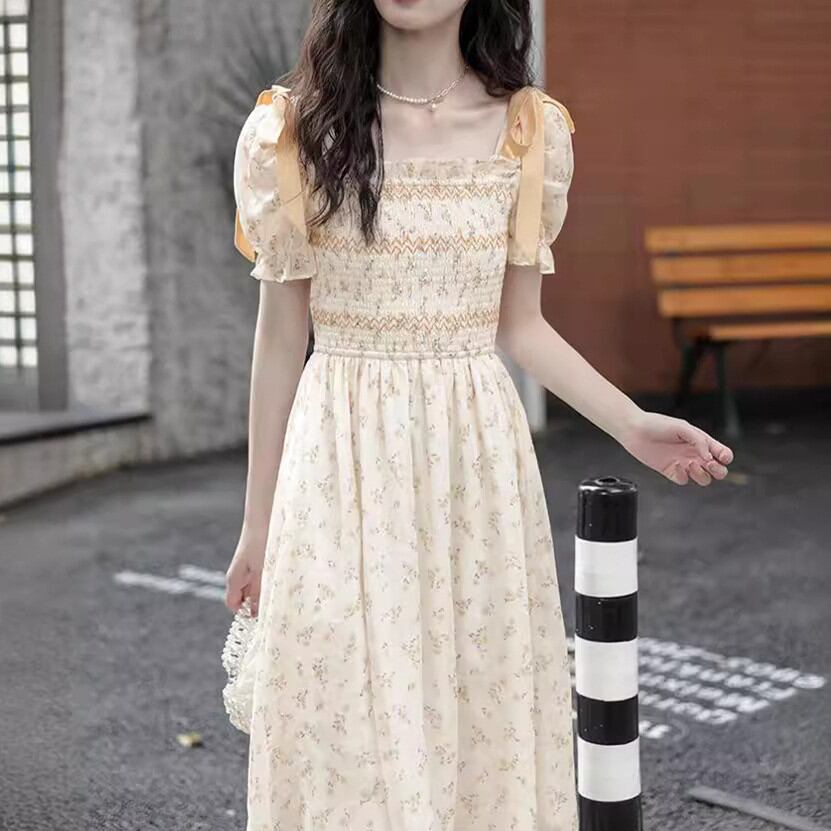 ◎【送料無料】ワンピース シャーリング スクエアネック ワンピ 半袖 リゾート アースカラー 大きいサイズ カジュアル