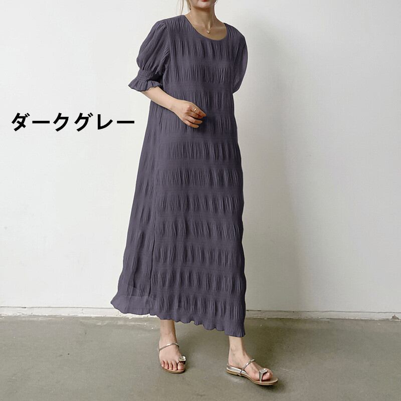 ◎【送料無料】シャーリング シフォンワンピース ロング ワンピース 長袖 レディース 半袖 おすすめ おしゃれ ギャザー