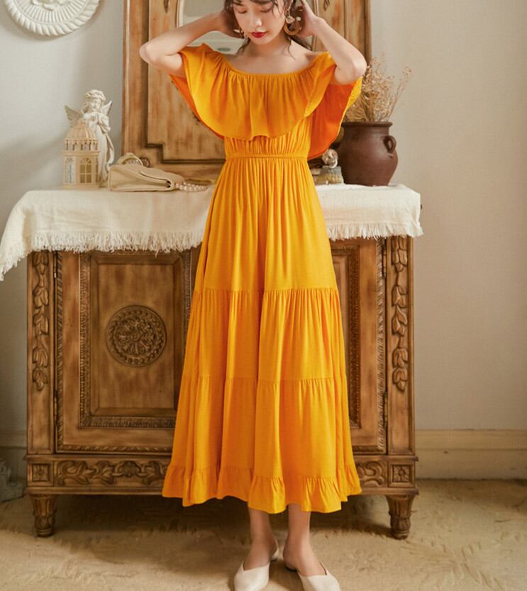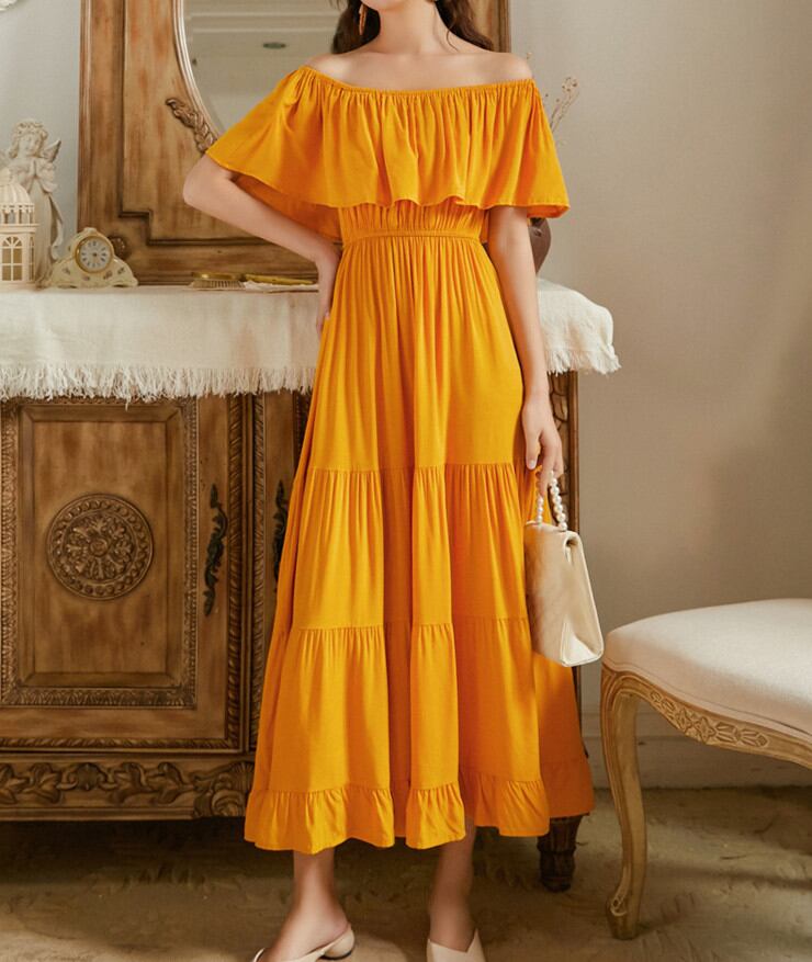 ◎【送料無料】リゾートワンピース 大人可愛い 夏ワンピース オフショルダー ワンピース 白 赤 黄 ハワイアン 沖縄 無地