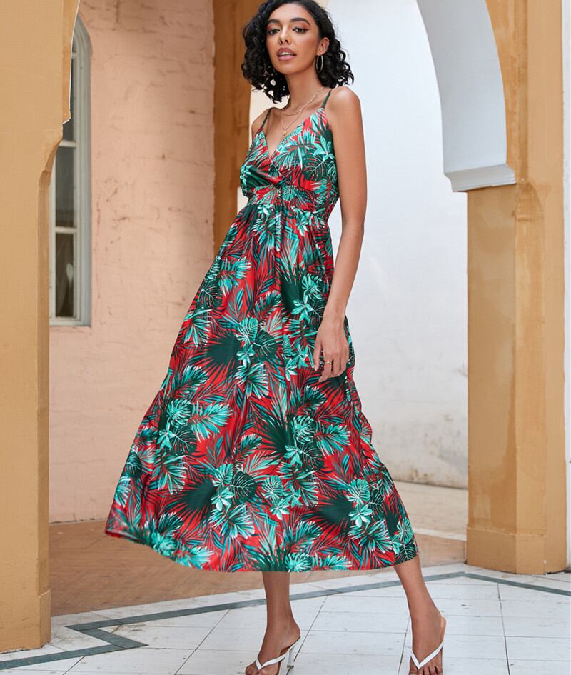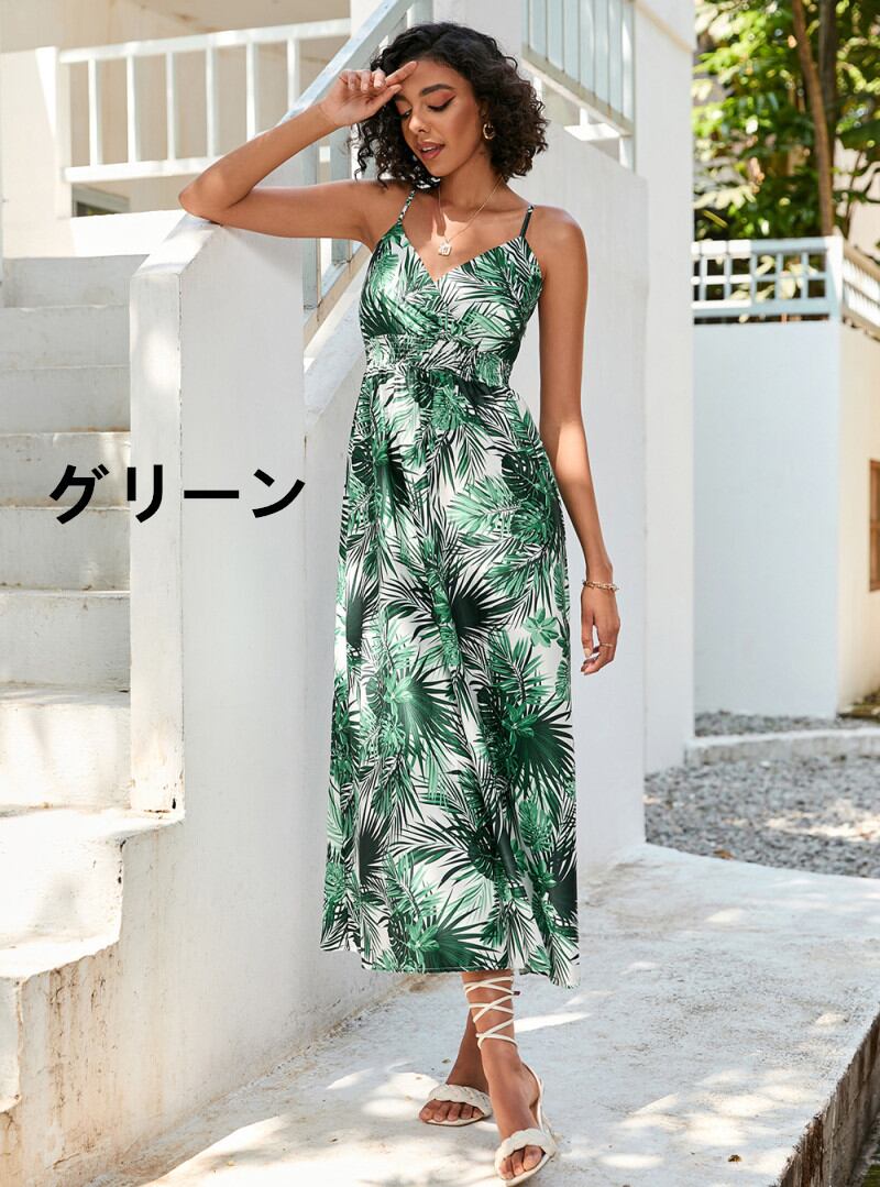 ◎【送料無料】キャミワンピース カシュクール 花柄ワンピース キャミソールワンピース ハワイアン調 シャーリング