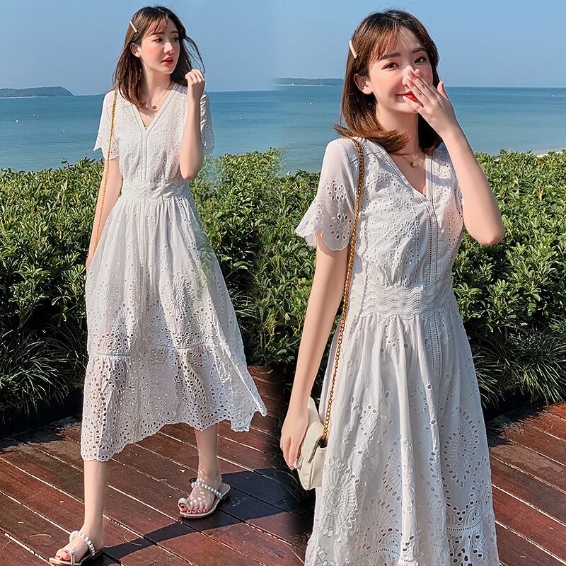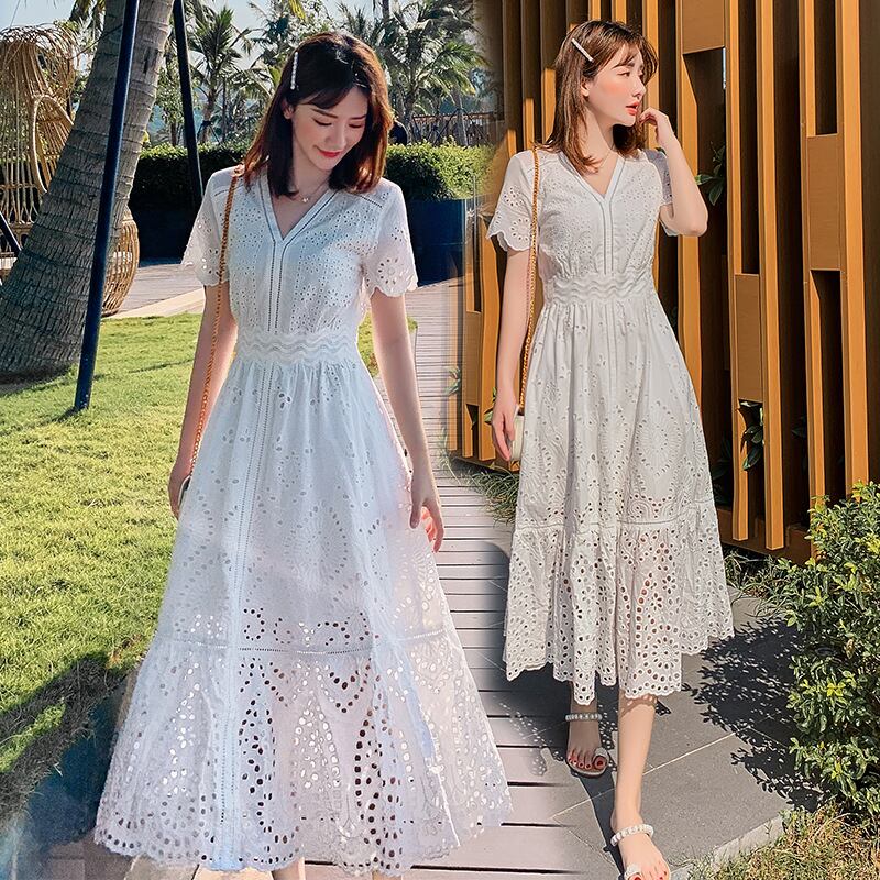 ◎【送料無料】Vネックワンピース フレアワンピース 花柄ワンピース 夏 レディース サマードレス 半袖 Aラインワンピース