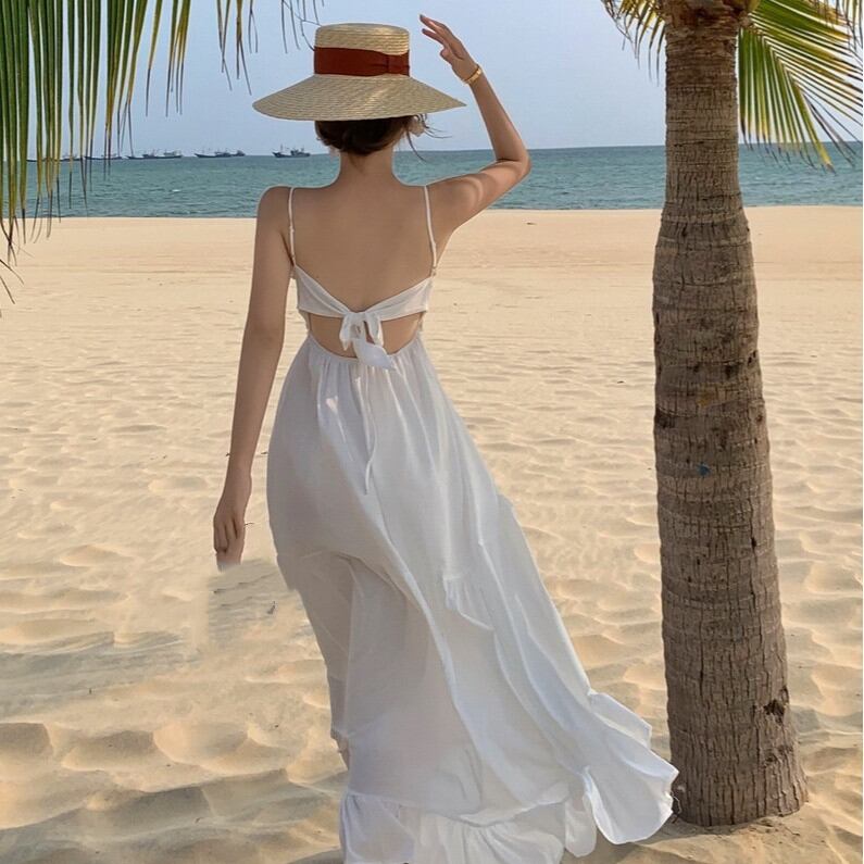 ◎【送料無料】リゾートワンピース キャミワンピ フレアワンピース サマードレス Vネック 白 ホワイト カジュアル 海
