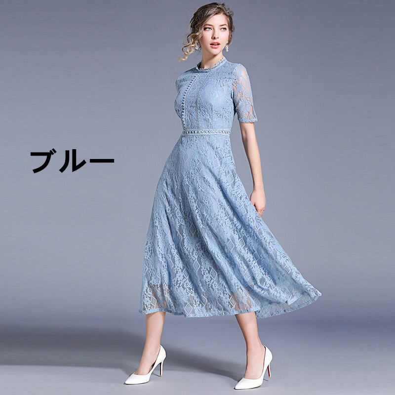 ◎【送料無料】花柄ワンピース レースワンピース ミモレ丈ワンピース 半袖 ゲストドレス Aラインドレス フレアドレス