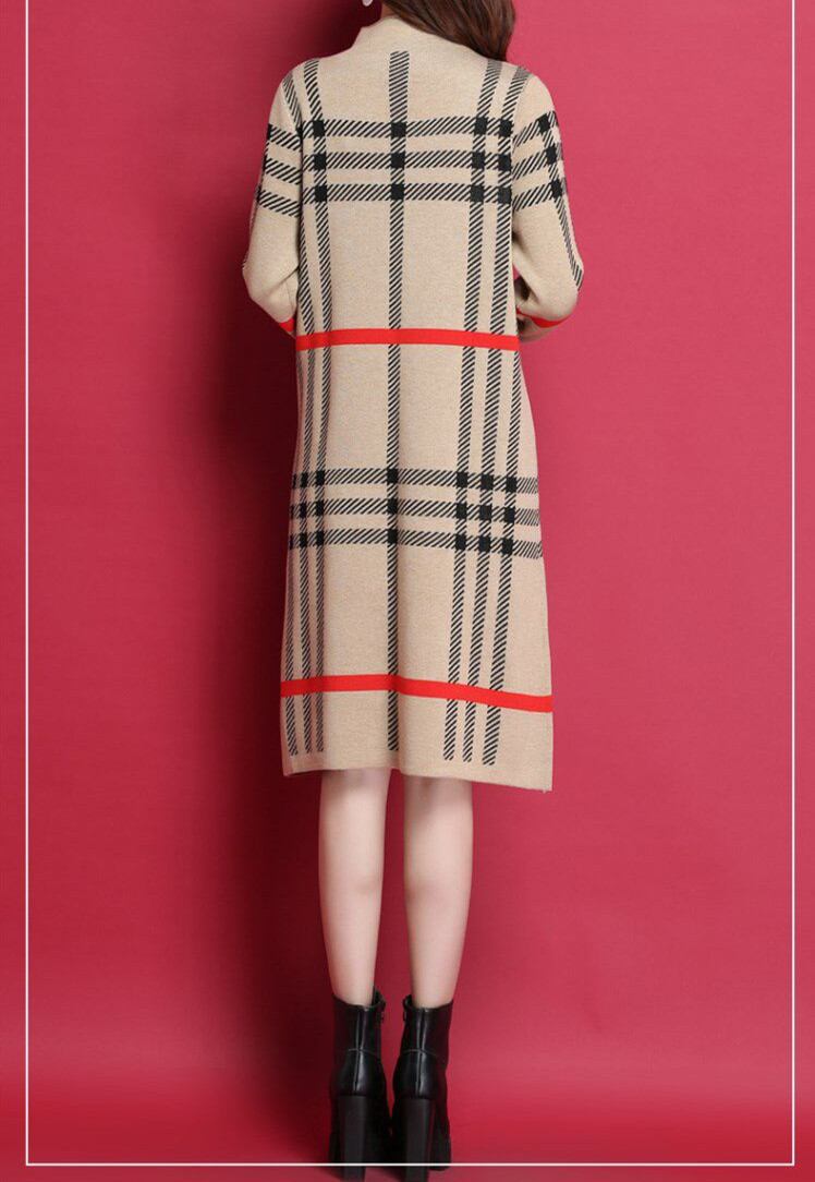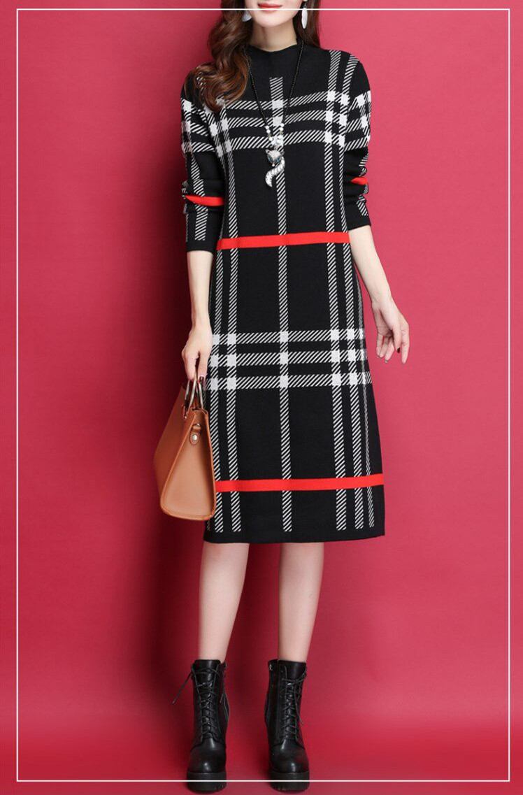 ◎【送料無料】ニット ワンピース ブラック ベージュ 大人 女性 チェック柄 レディース 長袖 秋冬ワンピ 大きいサイズ