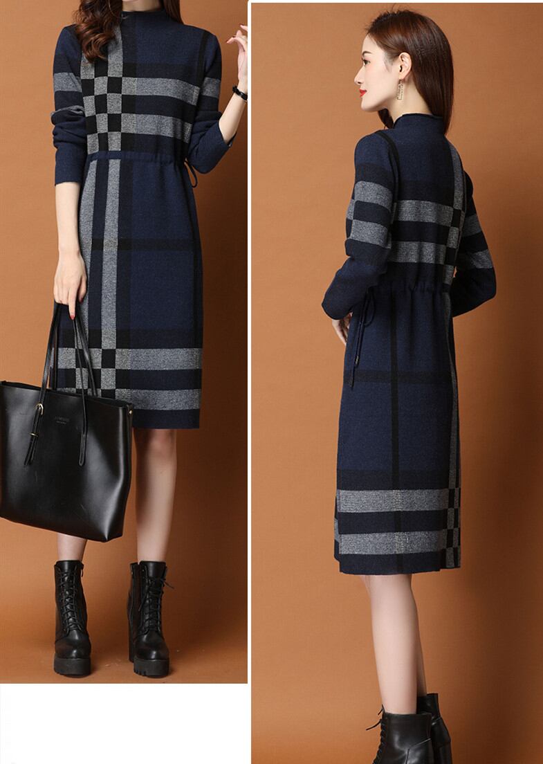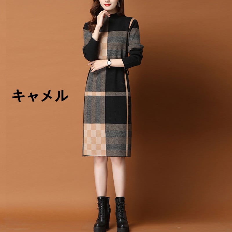 ◎【送料無料】ニットワンピース チェック柄 オシャレ ニット 冬 レディース 膝丈 ワンピース 長袖 きれいめ 上品