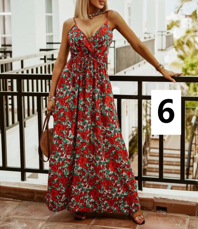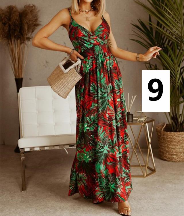 ◎【送料無料】キャミワンピース Vネック マキシ丈 セクシー 着痩せ 葉っぱ柄ワンピース