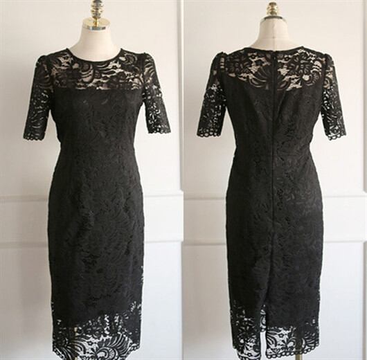 ◎【送料無料】パーティードレス 黒 レースワンピース 半袖ドレス