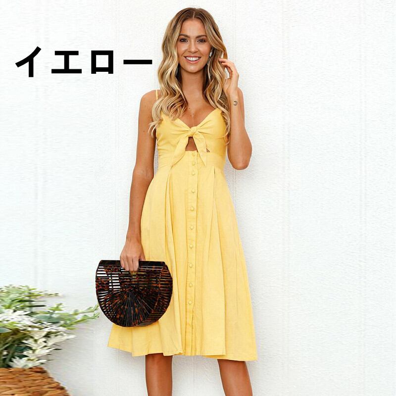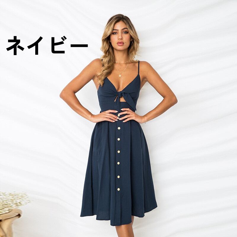 胸もとが結び目デザインになるセクシーなキャミソールワンピースが登場。