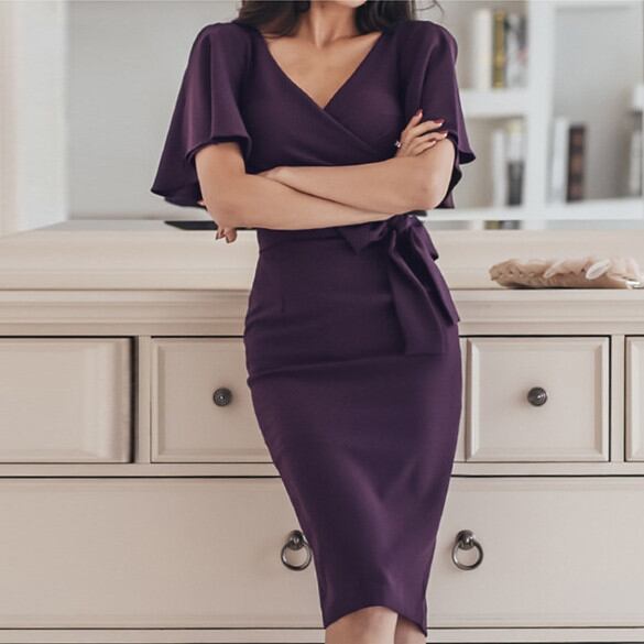 ◎【送料無料】ひざ丈ワンピース ワンピース リボン フレア袖
