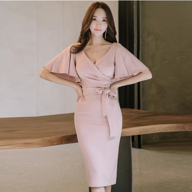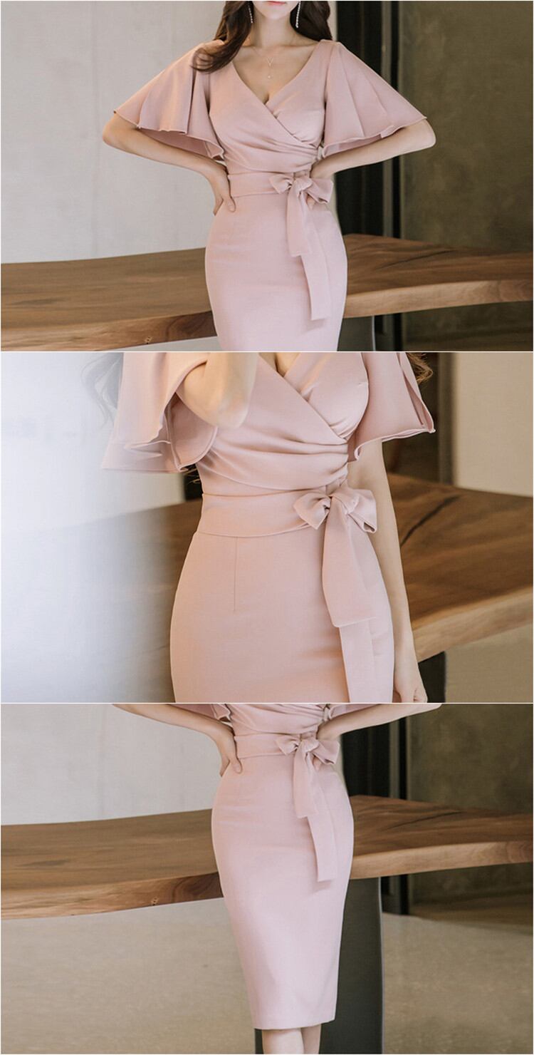 ◎【送料無料】フレア袖ワンピ リボン カシュクール 2026春夏新作ワンピース