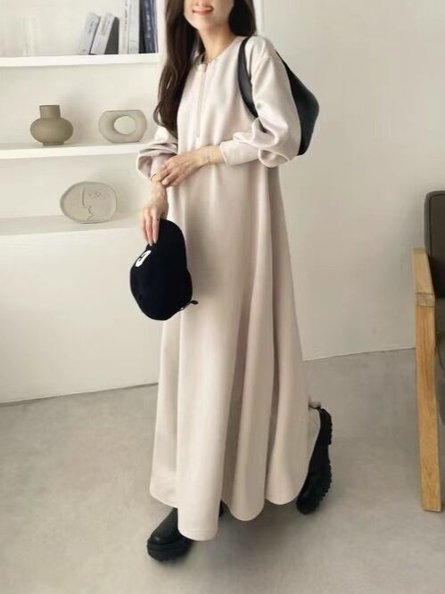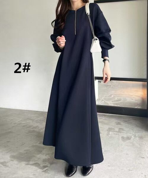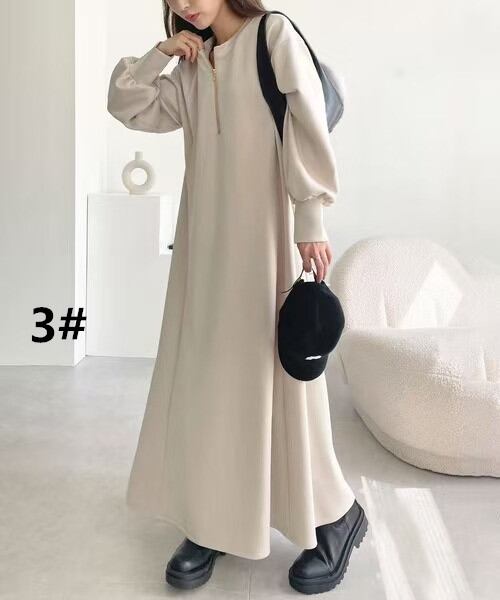 ◎【送料無料】ワンピース レディース ロングワンピ ラウンドネック 秋冬新作 ゆったり 体型カバー マキシ丈