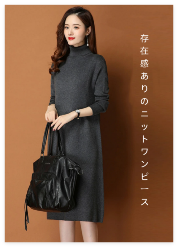 ◎【送料無料】ワンピース レディース ニットワンピース 長袖 秋冬 ニット大きいサイズ 体型カバー ハイネック