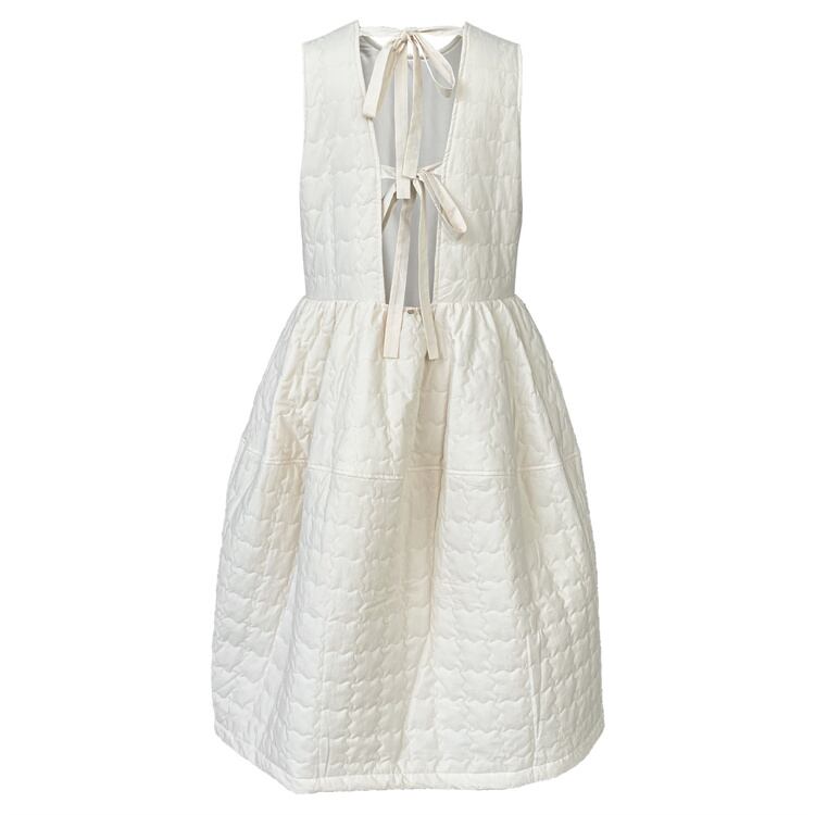 秋冬向け無袖ベストワンピース 厚手綿入りで暖か ゆったりロング丈 丸首 リボン付き カラー2色