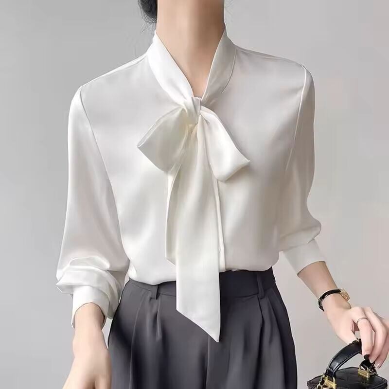 【送料無料◎】 エレガントなボウネックホワイトシフォンシャツ女性 2026 ファッション秋冬長袖トップス Mujer 韓国スタイルオフィスレディースブラウス