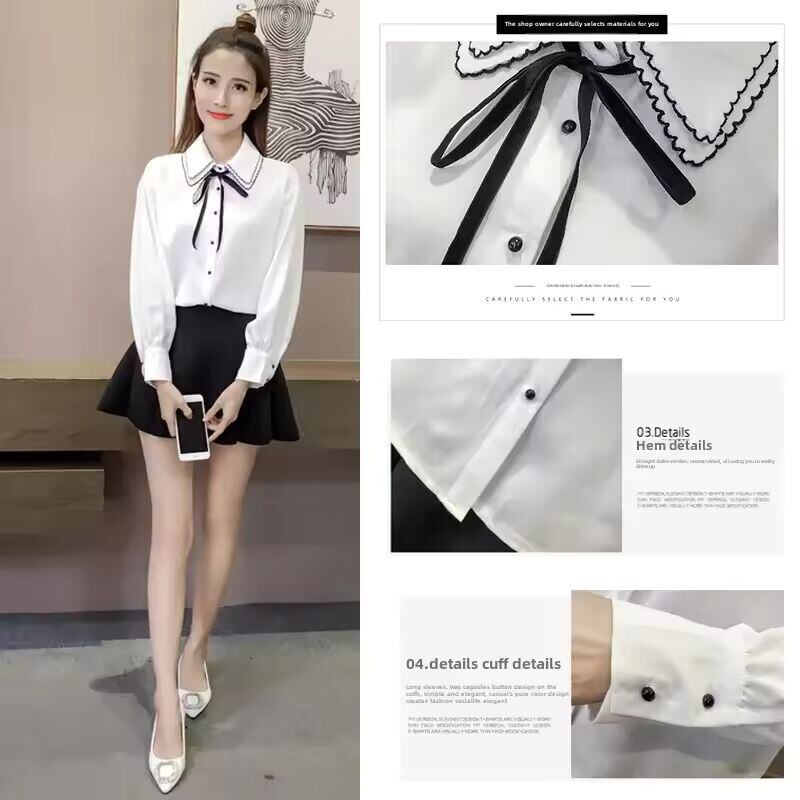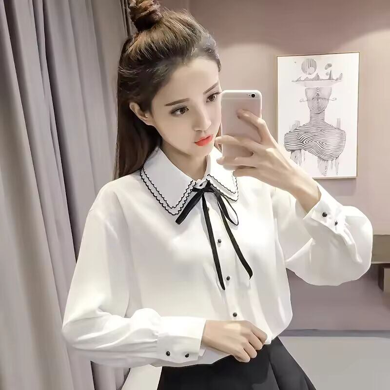 【送料無料◎】 2022 春の新韓国スタイル甘い長袖リボンシングルブレストシャツ痩身効果スムーズなシルエットファッショナブルな女性